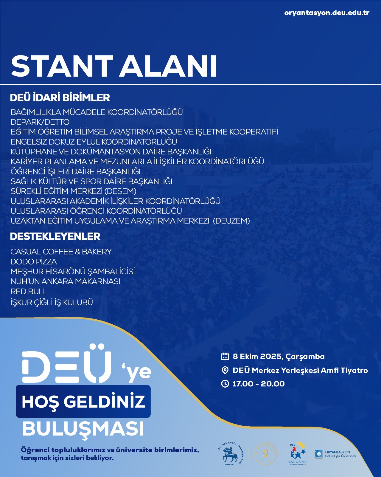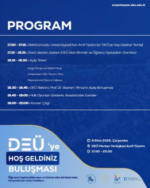 birlikte 08 Ekim 2025 saat 17.00’de başlayacak olan “DEÜ’ye Hoş Geldiniz Buluşması” etkinliği