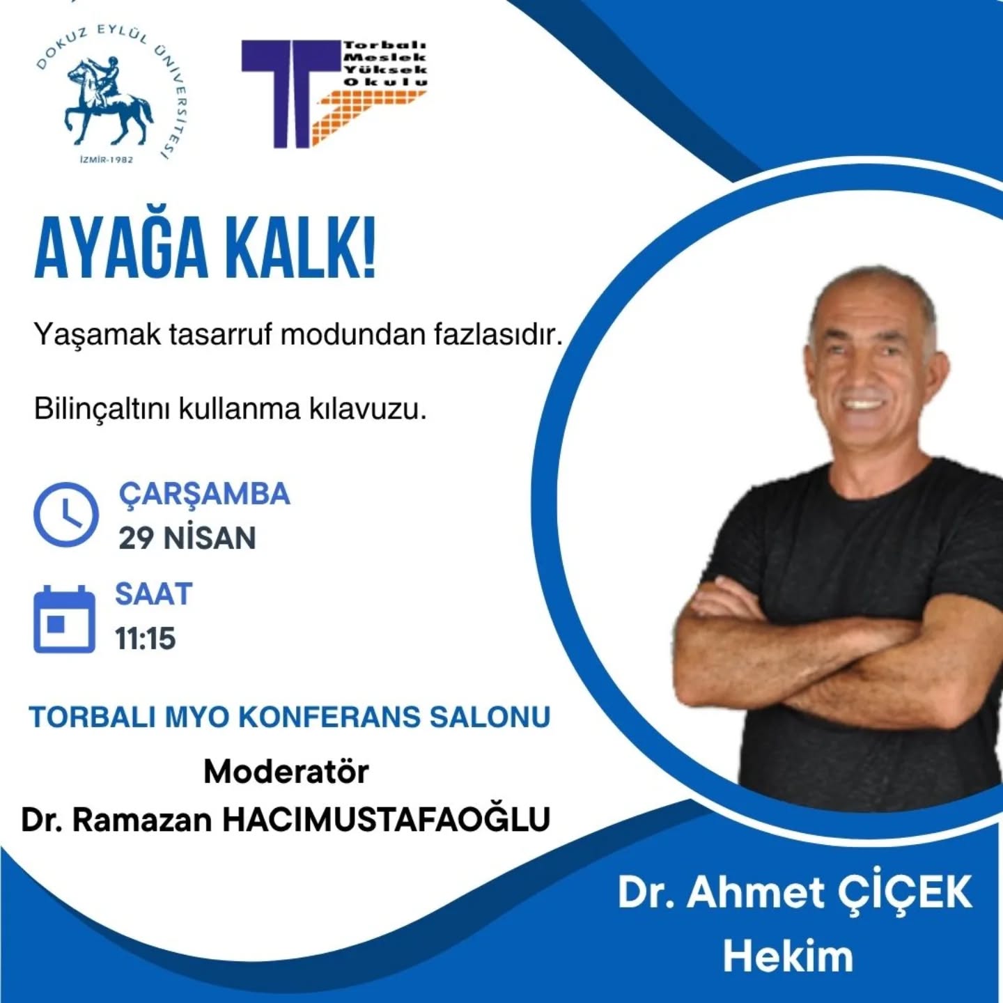 Dr. Ahmet ÇİÇEK’in Konuk Olduğu “AYAĞA KALK! Yaşamak Tasarruf Modundan Fazladır. Bilinç Altı Kullanma Kılavuzu.” adlı Konferans Duyurusu Yayınlanma Tarihi: 27-04-2026